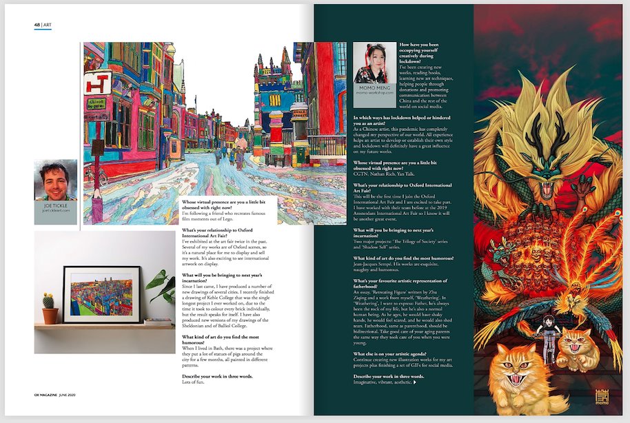 真开心,昨天收到消息我的一篇采访在牛津的OX MAGAZINE六月份杂志上作为精选艺术人进行了刊载。三月时我的一幅作品也在牛津国际艺术展前瞻新闻里被精选推荐,我自己到现在才知道,哈哈哈。可以在以下网页看到详细的采访内容: