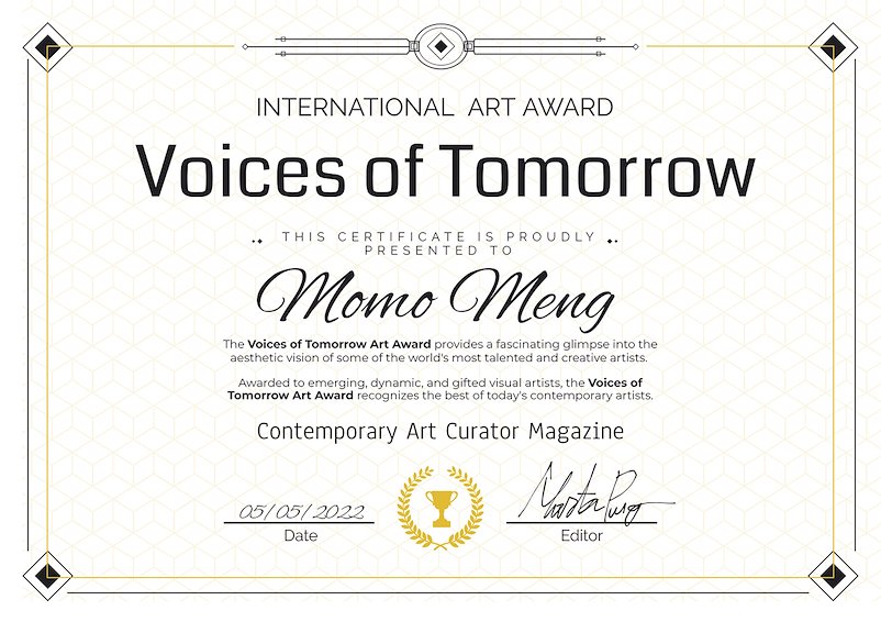 I'm very happy and proud to receive the "Voices of Tomorrow" Art Award given by the Contemporary Art Curator Magazine🥰 Thank you so much Contemporary Art Curator, it has been an honor and pleasure working with you!😘❤️