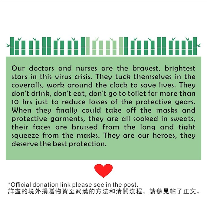 诚心祝愿患者快快康复,愿一线医护人员,还有所有为维护公众卫生健康而尽责尽力不眠不休的后方支援人们平安幸福。🙏 因为有你们,在这至暗的时刻我们才能看见一丝曙光和希望,衷心地感谢你们。