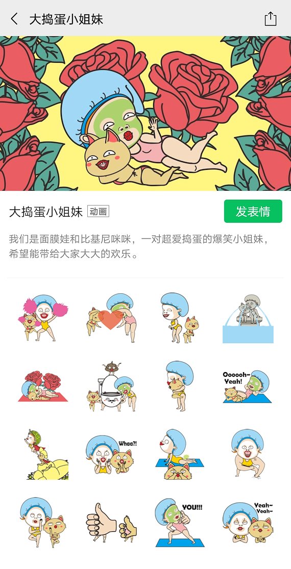 我制作的动画系列“大捣蛋小姐妹”在微信表情商店和GIPHY上正式上架咯,哈哈哈哈哈!希望面膜娃和比基尼咪咪这对超爱捣蛋的爆笑小姐妹,能给大家带去大大的欢乐!