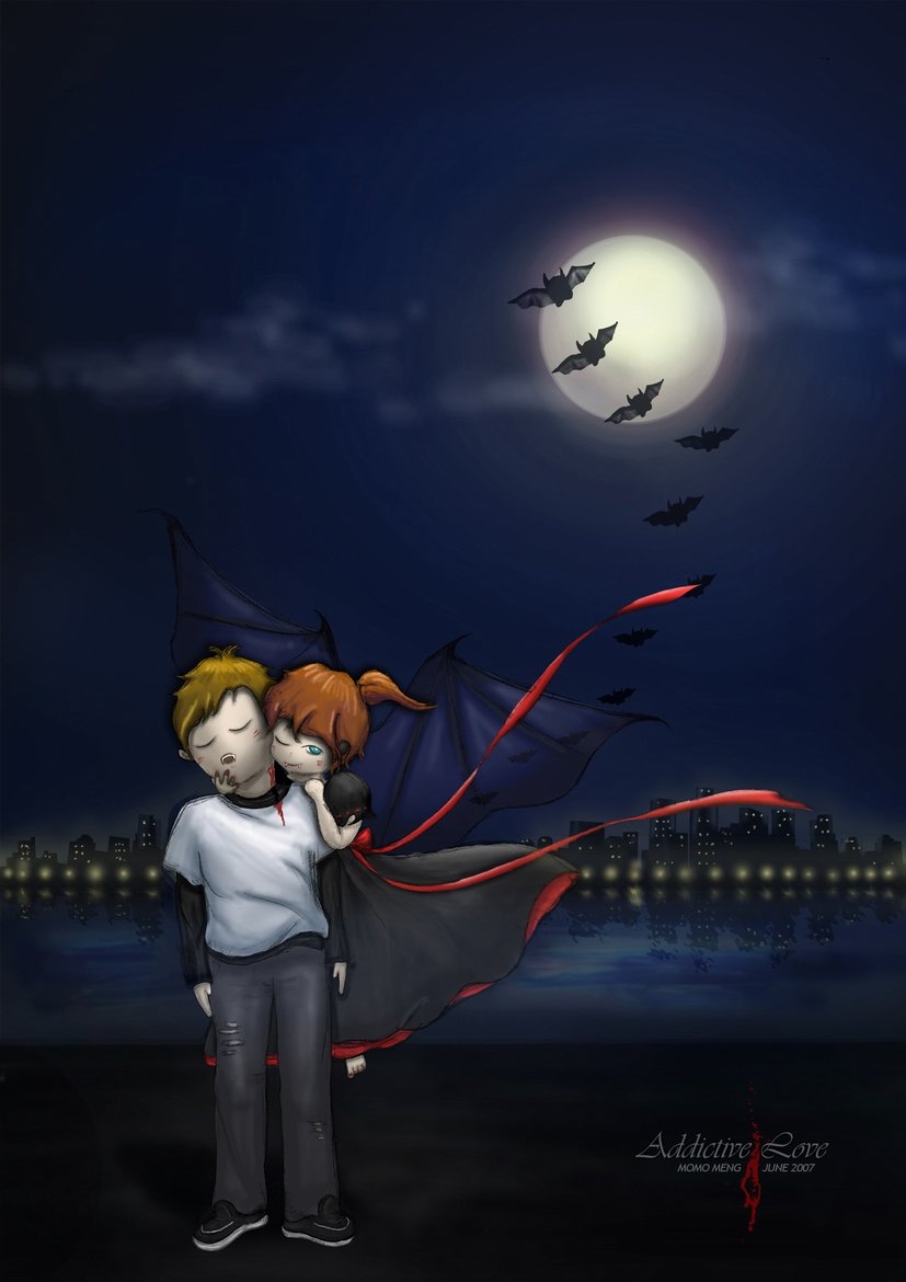 "Addictive love" is a vampire theme illustration, quite popular in some forums, maybe the topic " blood addict" is always charming :)