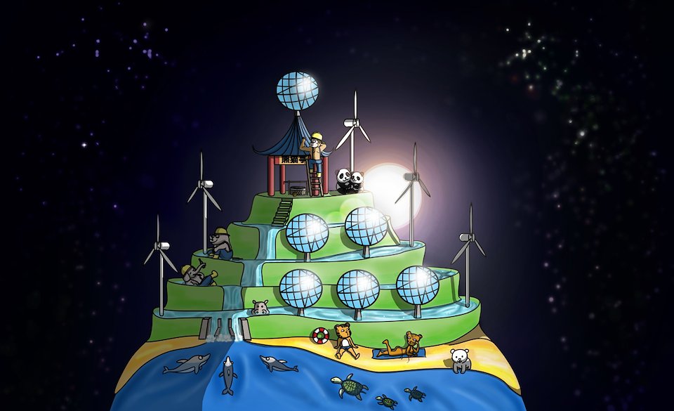 I truely believe expanding the use of renewable energy can make our earth a much better place. That’s the reason I created this piece " Lights up the earth". Using the endangered species of animals to represent our urgent to be changed fragile ecological environment. I wish sooner we could share a clearer sky with our lovely friends, yet brighten up our world with renewable resources (Solar power + Geothermal Energy+ Wind power+ Hydro power and so on). I love Green!