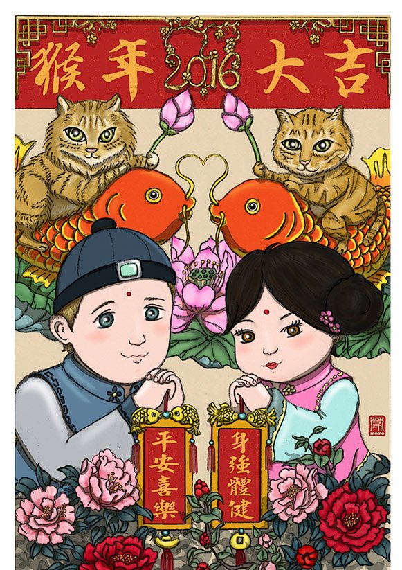 As the Chinese characters said on this image, I hereby wish my dear family and friends, a healthy, happy and prosperous Monkey year 2016!