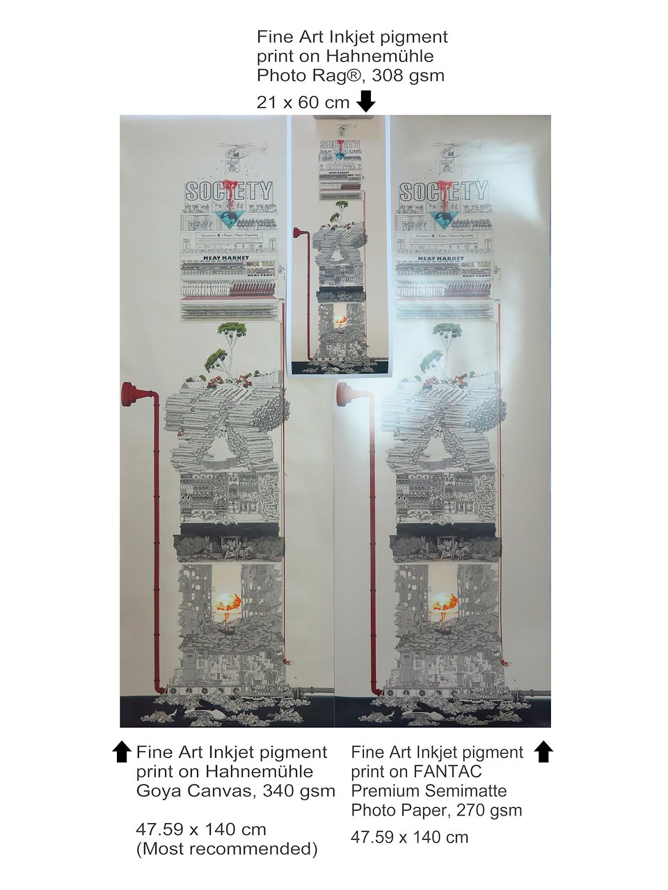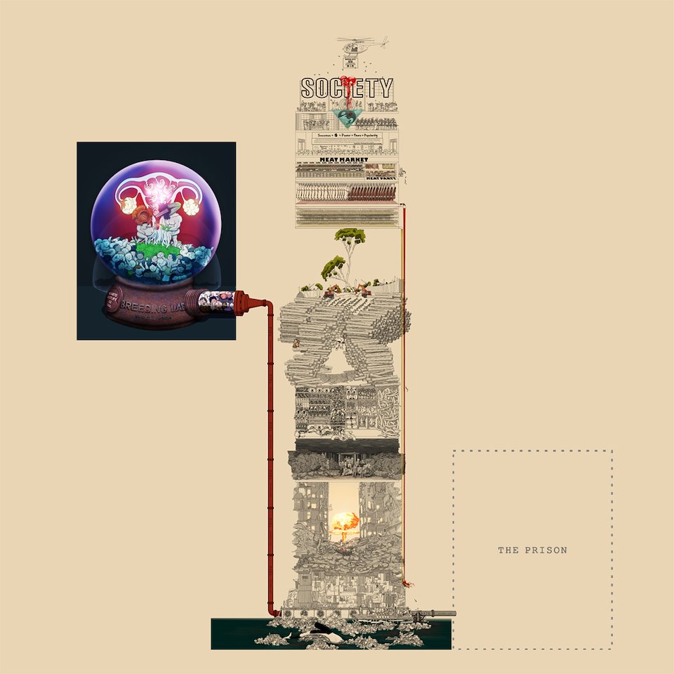 Considering the huge dimensions of this work, I will use 7 sections below to show this story in details. Also you can check out my Instagram account @momomengart to read through ideas behind each part of "The Machine". But if you want to feel the full impact of this work, come to my future exhibitions to see it in the flesh.