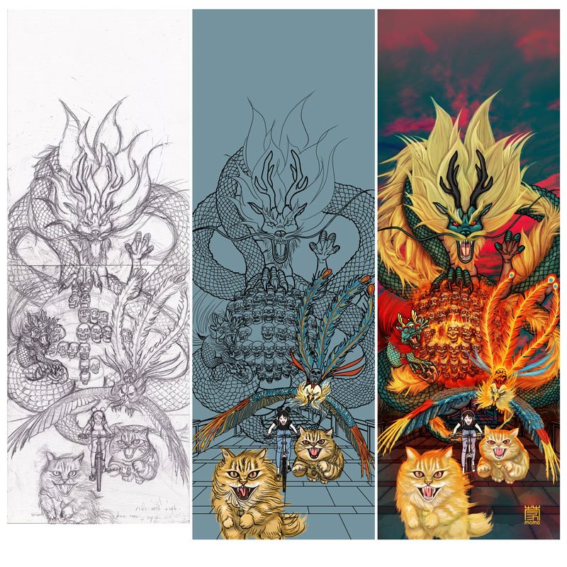 新近完成的一幅作品。作為我的新插畫系列Shadow Self (影子自我)的開篇章節,這幅畫有著蠻牛的名字Creatures of Wrath,在我腦海裡最早浮現的中文名是"屠城盛怒"。
