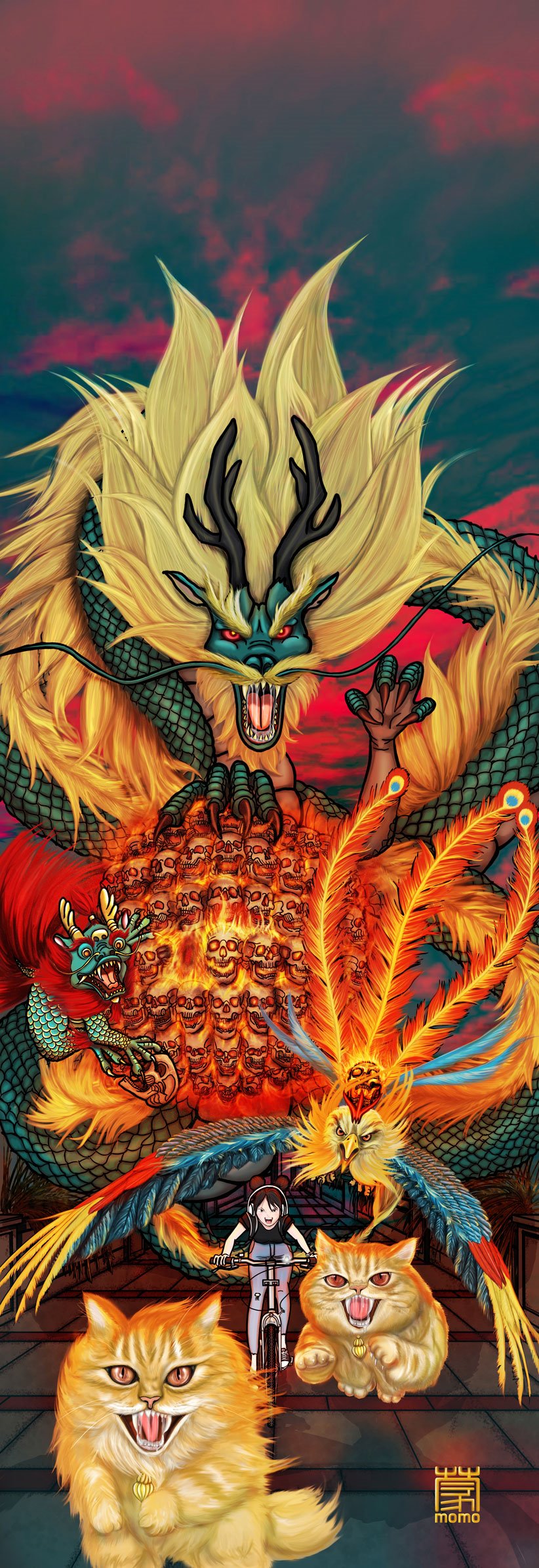 These beautiful and fierce imaginative creatures are my best companions when I'm in rage. They emerge from the dark side of my mind, twine with the fast and heavy rhythms in my headphone, together we speed through the city with our burning anger. "F**k the world!", we roar, and yeah, we are one.