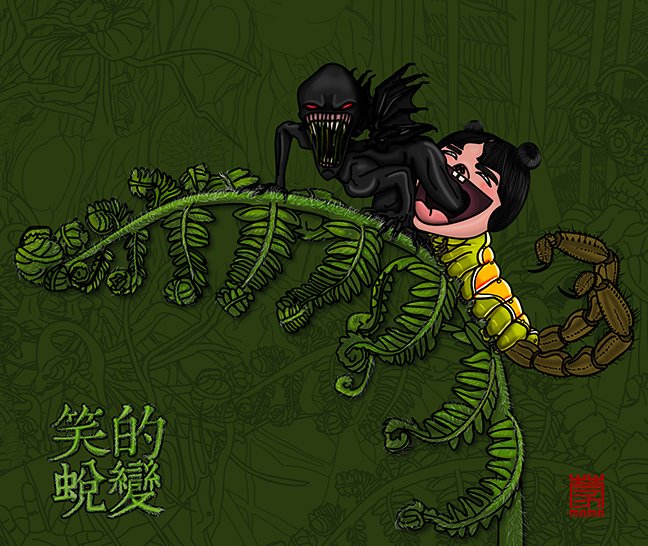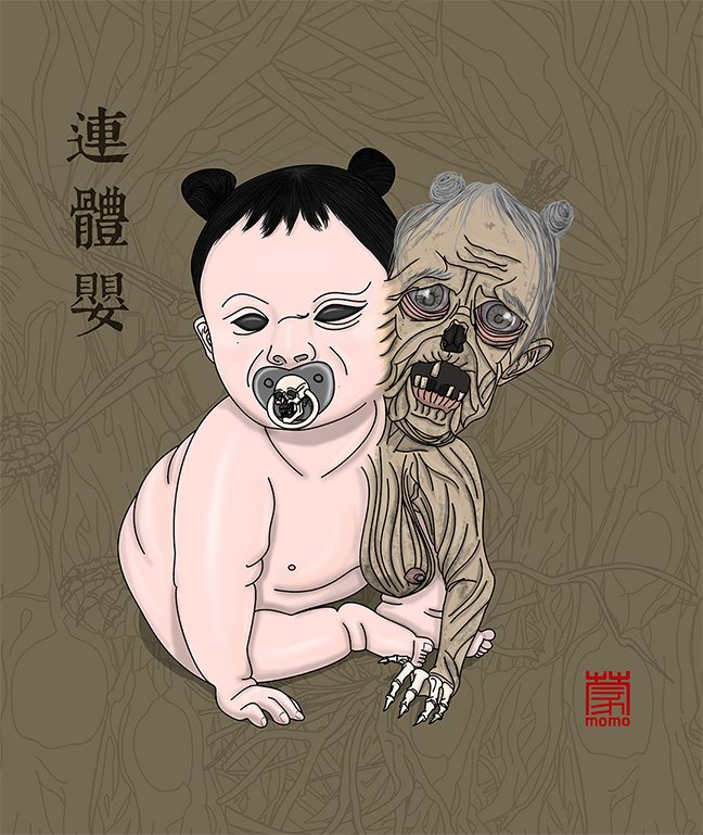 By the way, if you've seen my previous work "The Lair", you might notice that there's an uncanny shadow lurking in the center of the illustration. That's right, it is the Siamese twins I introduce today.